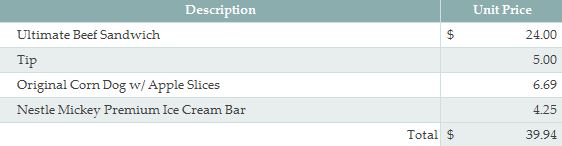 The rules are the same as before: $40 to spend on meals without going over. I must purchase a SNACK, a COUNTER SERVICE meal, and a TABLE SERVICE meal, which must include a 20% tip. Planning ahead helps me out, as before I have eaten breakfast in my hotel room, and I am carrying a water bottle that can be refilled at the park’s drinking fountains.
