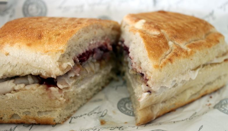I’ll begin with my counter service, and select on of the newest additions to Anaheim, Earl of Sandwich. All of the sandwiches cost $6.99; but are served a la carte. I’ll grab one that will remind of Thanksgiving leftovers, one of my times of the year.  The Holiday Turkey contains turkey, gravy, stuffing and cranberries. With all the carbs from the stuffing and bread, I’ll skip chips and but try the Earl Grey Lemonade for $1.99