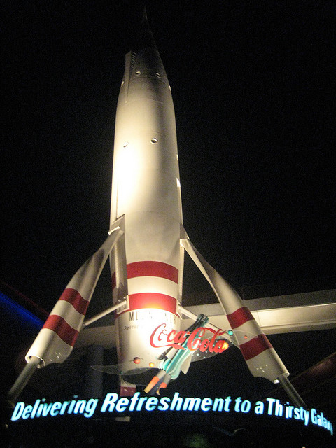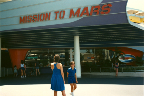 Two years later Tomorrowland would see the arrival of a much more thrilling space attraction, and to prepare for it, the area where the Flying Saucers had previously existed was given a more intergalactic feel. First, in the same show building as Mission to Mars came Space Place, a large counter service restaurant for guests to grab some pizza or hot dogs. Space Place had the distinction of being the only eatery in Disneyland to serve both Coca-Cola and Pepsi Cola at the same time (Coke and Pepsi were both available in the park, just not in the same location, typically). The restaurant itself would serve guest until 1996, when it was closed to make room for a new, temporary attraction that was also taking the space used by Mission to Mars.