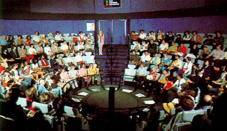 Monday, July 18, 1955 would be the first operating day for Circarama, which would later be known as Circle-Vision. Operating in a show building at the entrance of Tomorrowland, A Tour of the West took standing guests on a 12 minute scenic drive from Beverly Hills to Monument Valley. The film was shot with 11 16mm cameras mounted on top of a (presenting sponsor) American Motors car. As the name suggests, the movie was presented on a 360 degree screen, which drew in the park guests (it was also a free admission attraction, no ticket required). The interior of the theater was decorated with American Motor cars and Kelvinator refrigerators, both sponsors of the attraction. A Tour of the West would until 1960, when it was replaced by the 16 minute America the Beautiful. This version included aerial footage of the nation. At this time, Bell Telephone Systems became the sole presenting sponsor of Circarama. The name would be changed in 1964 to Circle-Vision. More name changes would come in the future, and the attraction would run until 1997.