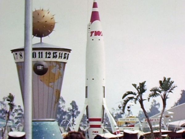 At the entrance of Tomorrowland stood the Clock of the World. Park guests were able to walk up to a 17 foot tall tower which had a world map projected on it. A set of 24 numbers would rotate counterclockwise around the map, aligning with the proper hour for each area of the world. A digital display showed the minute display for park guests. The clock would last until 1966.