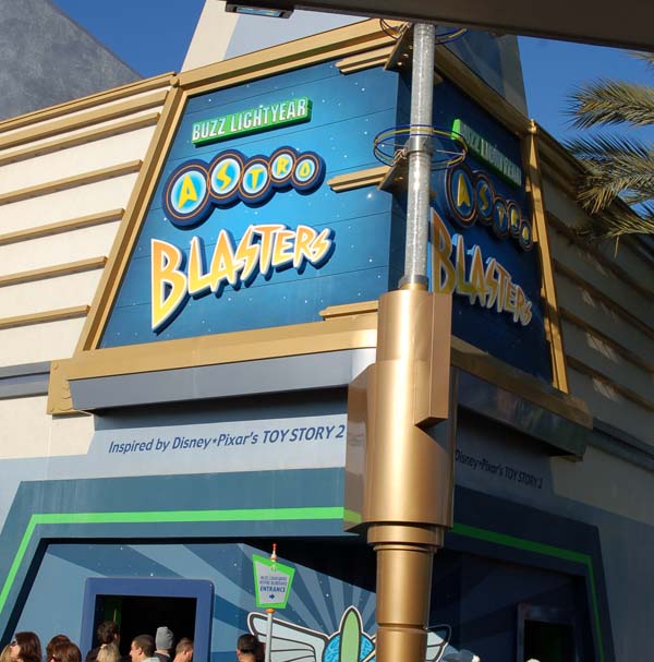 With the remodel of Tomorrowland complete in the late 1990’s, there have not been many additions to the area in the past eleven years. However, the first came in time for the celebration of Disneyland’s Golden Anniversary. Toy Story made its permanent return to Tomorrowland on March 17, 2005 with Buzz Lightyear’s Astro Blasters. Running in the previous home of CircleVision 360 and American Space Experience, this omni-mover interactive attraction allows guests to compete in a laser tag game. Different shaped targets are set through the attraction, which guests shoot at with laser guns attached to the omni-mover; a steering mechanism enables guests to turn their omni-mover in a complete circle to help aim at the targets they desired. Score is kept, and after the attraction is over guests are able to stop at a kiosk and send a their photo and game score to their personal email address, before entering a gift shop. The attraction still runs today.