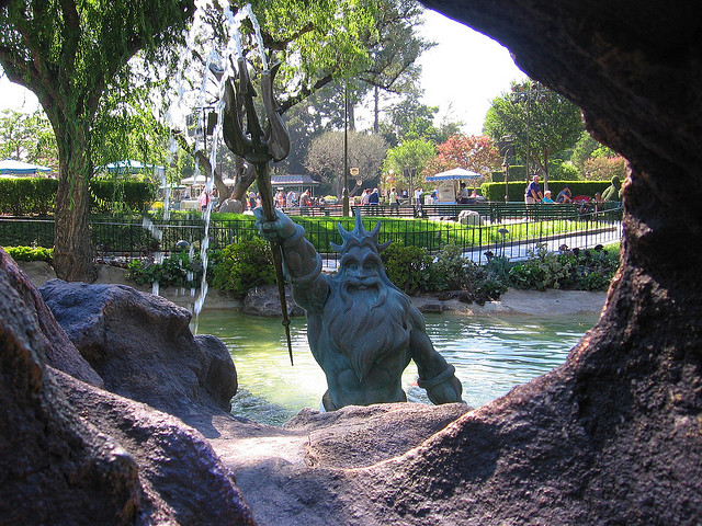 In February 1996 the Alpine Gardens were re-landscaped and re-themed after The Little Mermaid. Named King Triton’s Gardens, statues of the movie characters were placed around the pond, with Triton in the middle of the pond, water shooting from his trident. There was also a clam shell shaped area to meet Ariel and other Disney Princesses. The area would be re-themed again in 2008, although the King Triton statue from the pond still stands, only now it is Disney California Adventure over the entrance of the Little Mermaid attraction.