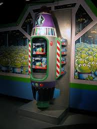 The gift shop guest enter from Buzz Lightyear’s Astro Blasters is the Little Green Men Command Store, which opened at the same time as the Astro Blasters. As expected, Toy Story themed merchandise is available in this store, along with collectible pins and standard park merchandise. What makes this shop, formerly the Premier Shop, unique was incorporation of former Tomorrowland attractions in its decor. Plush toys are merchandised on a Rocket Jet, while the cashier’s counter is a former PeopleMover car. Like the Astro Blasters, this link to Tomorrowland’s past is still operational.
