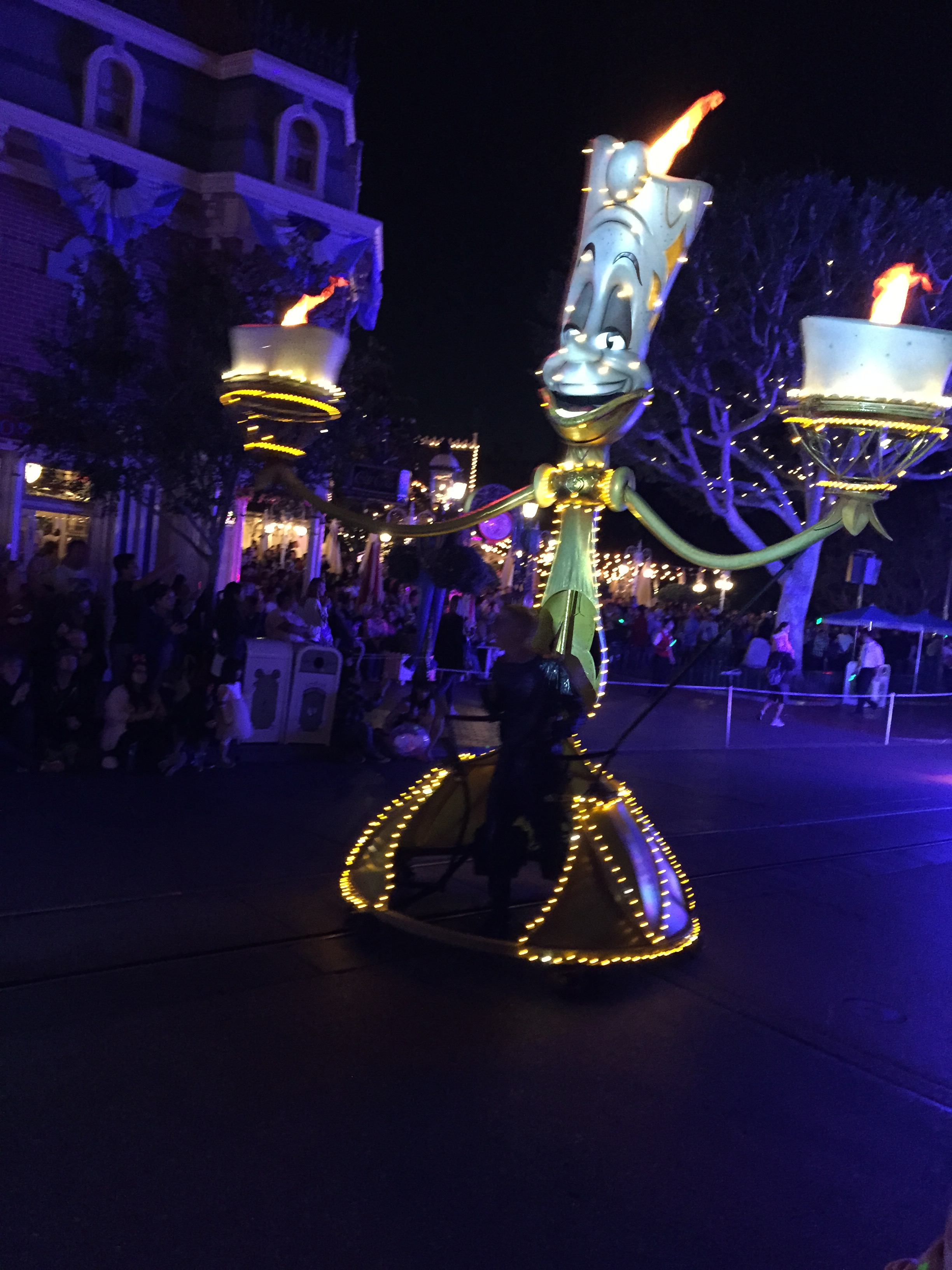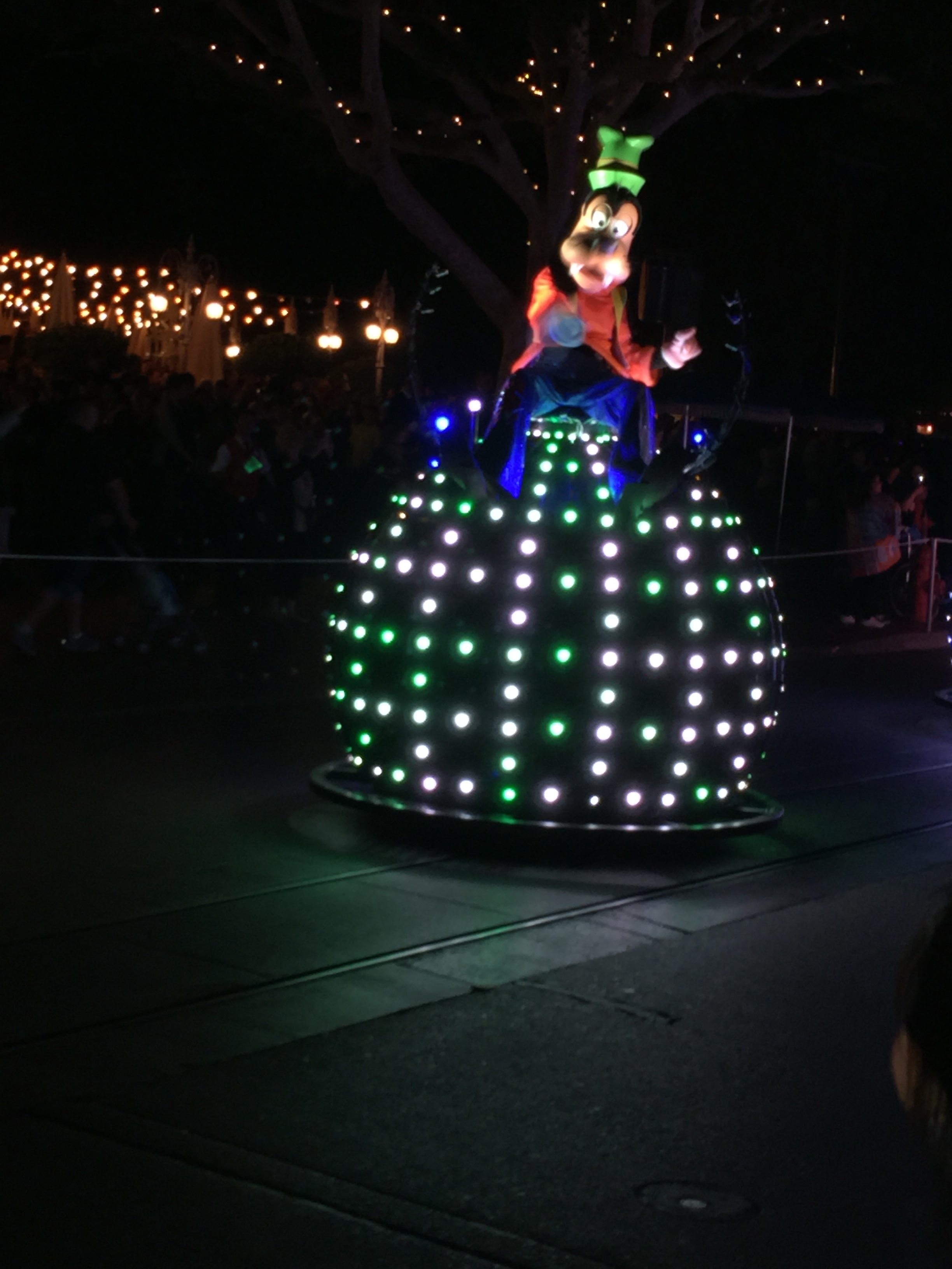Finally, after three hours of waiting, the Main Street lights were dimmed, the music started and Paint the Night was coming our way. And what a parade it was! The music was high energy, the LED lights on the floats and giant puppets were stunning. It was certainly worth the wait (the photos just do not to justice to the parade). This parade is going to be around for years to come. Disneyland finally has a successor to the Main Street Electrical Parade (sorry, Light Magic).